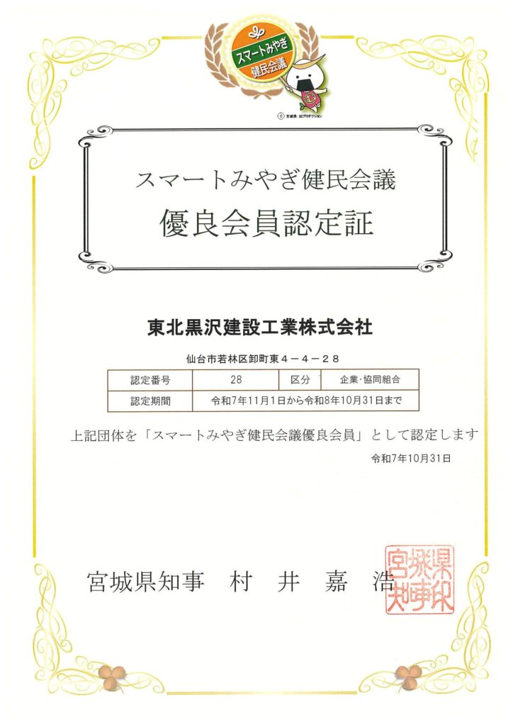昨年に引き続き、今年もスマートみやぎ健民会議認定をいただきました。
